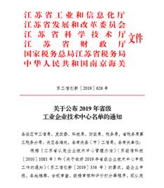 2019年11月,江蘇省工信廳公布了2019年省級工業(yè)企業(yè)技術(shù)中心名單。